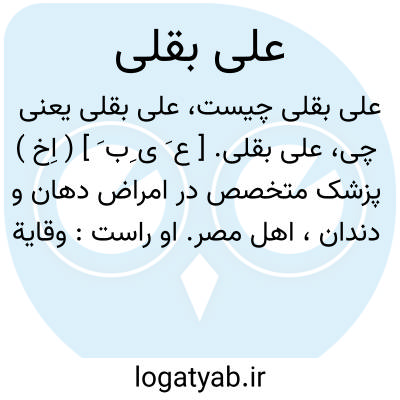 علی بقلی. [ ع َ ی ِب َ ] ( اِخ ) پزشک متخصص در امراض دهان و دندان، اهل مصر. او راست: وقایة الاسنان، که در سال 1324 هَ. ق.در زمان حیات مؤلف در قاهره به چاپ رسید. ( از معجم المؤلفین بنقل از المکتبةالبلدیة. فهرس الطب ص 53 ).