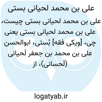 [ویکی فقه] بُستی، ابوالحسن علی بن محمد بن جعفر لَحیانی (لَحسانی)، از مشایخ صوفیه خراسان در قرن پنجم بوده است.