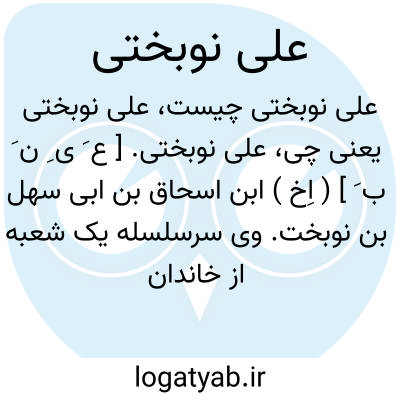 علی نوبختی. [ ع َ ی ِ ن َ ب َ ] ( اِخ ) ابن اسحاق بن ابی سهل بن نوبخت. وی سرسلسله یک شعبه از خاندان نوبختی بود و او دو پسر داشت یکی به نام ابوسهل اسماعیل که متکلمی معروف بود و دیگری به نام ابوجعفر محمد که ممدوح ابن الرومی بود. و نیز دختری داشت که نام و نشان او به دست نیامده است. اما فرزند آن دختر، ابومحمد حسن بن موسی بود که خواهرزاده ابوسهل اسماعیل و ابوجعفر محمد محسوب می شود. ( از خاندان نوبختی عباس اقبال ص 125 ).