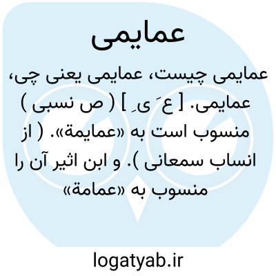 عمایمی. [ ع َ ی ِ ] ( ص نسبی ) منسوب است به «عمایمة». ( از انساب سمعانی ). و ابن اثیر آن را منسوب به «عمامة» ضبط کرده است. رجوع به اللباب فی تهذیب الانساب ابن اثیر ج 2 ص 151 شود.