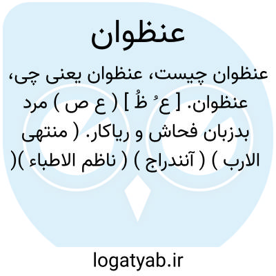 عنظوان. [ ع ُ ظُ ] ( ع ص ) مرد بدزبان فحاش و ریاکار. ( منتهی الارب ) ( آنندراج ) ( ناظم الاطباء )( از اقرب الموارد ). و یا مرد استهزأکننده برانگیزنده. ( از اقرب الموارد ) ( از تاج العروس ). عنظیان. رجوع به عنظیان شود. || ( اِ ) نوعی از شورگیاه که درد شکم آرد ستور را. و یا بهترین اُشنان. ( منتهی الارب ) ( آنندراج ) ( ناظم الاطباء ). گیاهی است از نوع حَمض که هرگاه شتر بسیاراز آن بخورد شکم وی به درد آید. و یا بهترین نوع اشنان. ( از اقرب الموارد ). || ( اِخ ) لقب عوف بن کنانه است. ( از منتهی الارب ) ( از اقرب الموارد ).