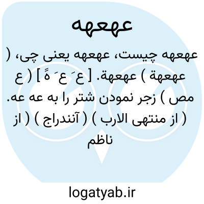 ( عهعهة ) عهعهة. [ ع َ ع َ هََ ] ( ع مص ) زجر نمودن شتر را به عه عه. ( از منتهی الارب ) ( آنندراج ) ( از ناظم الاطباء ) ( از اقرب الموارد ). رجوع به عه عه شود.