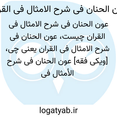 [ویکی فقه] عون الحنان فی شرح الامثال فی القرآن (کتاب). «عون الحنان فی شرح الامثال فی القرآن» کتابی است که توسط شیخ علی احمد عبد العال الطهطاوی، رئیس جمعیت اهل القرآن و السنة تهیه و تدوین شده است.