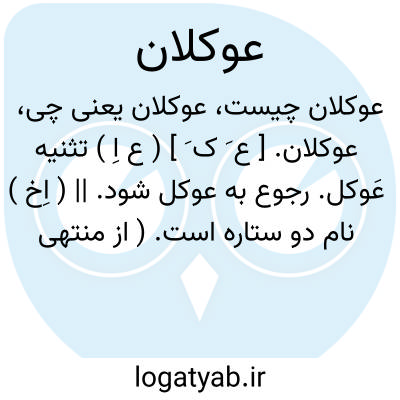 عوکلان. [ ع َ ک َ ] ( ع اِ ) تثنیه عَوکل. رجوع به عوکل شود. || ( اِخ ) نام دو ستاره است. ( از منتهی الارب ) ( از آنندراج ) ( از ناظم الاطباء ) ( از اقرب الموارد ).