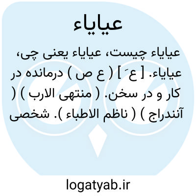 عیایاء. [ ع َ ] ( ع ص ) درمانده در کار و در سخن. ( منتهی الارب ) ( آنندراج ) ( ناظم الاطباء ). شخصی که به خواسته و مراد خود راه نیافته و یا از آن عاجز باشد و محکم کردن آن را نتوانسته باشد. ( از اقرب الموارد ). عَی. عَیّان. رجوع به عی و عَیّان شود. || فحل عیایاء؛ گشن درمانده در گشنی، یا گشن که گاهی گشنی نکرده، رجل عیایاء کذلک. ( منتهی الارب ) ( آنندراج ) ( ناظم الاطباء ) ( از ذیل اقرب الموارد ). عَیاء. رجوع به عیاء شود. ج، أعیاء. ( منتهی الارب ) ( ناظم الاطباء ).