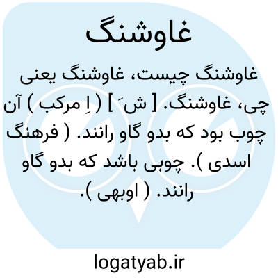 غاوشنگ. [ ش َ ] ( اِ مرکب ) آن چوب بود که بدو گاو رانند. ( فرهنگ اسدی ). چوبی باشد که بدو گاو رانند. ( اوبهی ). چوبی باشد که بر یک سر آن سیخی از آهن نصب کنند و بر سرین و کفل خر و گاو خلانند تا تند و زود براه روند و معنی ترکیبی آن گاوتند باشد چه غاو بمعنی گاو و شنگ بمعنی جلد و تند و تیز آمده است. ( برهان ). چوبی باشد که بدان گاو رانند معنی آن تیزکننده باشد و آن مخفف غاوباره است یعنی گاوراننده. ( انجمن آرای ناصری ):