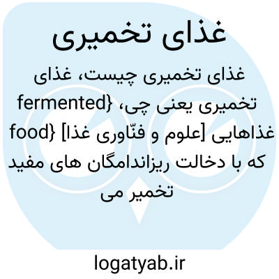 {fermented food} [علوم و فنّاوری غذا] غذاهایی که با دخالت ریزاندامگان های مفید تخمیر می شوند متـ. محصول تخمیری fermented product