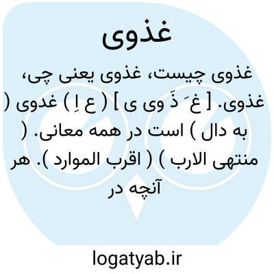 غذوی. [ غ َ ذَ وی ی ] ( ع اِ ) غدوی ( به دال ) است در همه معانی. ( منتهی الارب ) ( اقرب الموارد ). هر آنچه در شکم حوامل باشد یااینکه به گوسفند اختصاص دارد. ابن اعرابی گوید: غذوی، بهم و هر حیوانی است که تغذیه می شود. و نیز گوید: مردی اعرابی از بلهجیم به من خبر داد که غذوی آن بره یا بزغاله است که از شیر مادرش تغذیه نمی کند بلکه از شیر دیگری یا با چیز دیگر تغذیه می کند. ( از اقرب الموارد ). غَذی. ( اقرب الموارد ). رجوع به غذی شود.