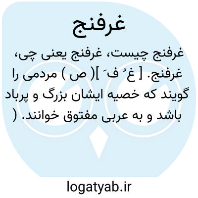 غرفنج. [ غ ُ ف َ ]( ص ) مردمی را گویند که خصیه ایشان بزرگ و پرباد باشد و به عربی مفتوق خوانند. ( برهان قاطع ). قول صاحب برهان قاطع غلط است زیرا در جایی کلمه غر را به معنی فنج ترجمه کرده و مفتوق را هم مرادف فنج آورده و گمان برده است که غرفنج یک کلمه و به معنی مفتوق است.