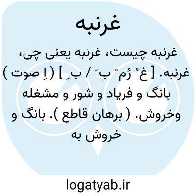 (غُ رُ بِ ) ۱ - (اِمص. ) غرنبیدن. ۲ - (اِ. ) بانگ و فریاد، خروش.