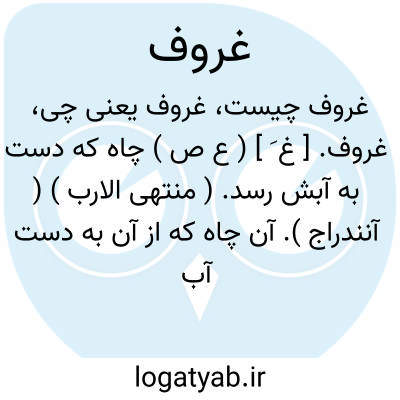 غروف. [ غ َ ] ( ع ص ) چاه که دست به آبش رسد. ( منتهی الارب ) ( آنندراج ). آن چاه که از آن به دست آب توان خوردن. ( مهذب الاسماء ). البئر التی یغترف ماؤها بالید. ( اقرب الموارد ). || غرب غروف؛ دلو بزرگ یا دلو بسیارآب بردار. ( منتهی الارب ) ( آنندراج ) ( از اقرب الموارد ). || ( اِ ) کوزه ای که شکل ظرف اتروسک را دارد، و آن را غَرّاف نیز آورده اند. ( دزی ج 2 ص 207 ).