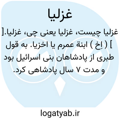 غزلیا.[ ] ( اِخ ) ابنة عمرم یا اخزیا. به قول طبری از پادشاهان بنی اسرائیل بود و مدت 7 سال پادشاهی کرد. متن عبارت طبری این است: «ثم ملکت عتلیا و تسمی غزلیا ابنة عمرم ام اخزیا... ملکها سبع سنین ». رجوع به مجمل التواریخ و القصص ص 144 و حاشیه آن شود.