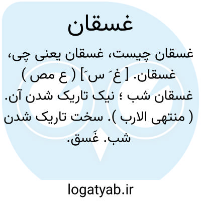 غسقان. [ غ َ س َ] ( ع مص ) غسقان شب؛ نیک تاریک شدن آن. ( منتهی الارب ). سخت تاریک شدن شب. غَسق. غَسَق. ( اقرب الموارد ). || غسقان آب؛ ریزش آب و مانند آن. ( منتهی الارب ) ( آنندراج ). ریختن آب. ( اقرب الموارد ). || غسقان سماء؛ باران ریزه باریدن. ( منتهی الارب ). ریختن باران و پاشیده شدن آن. ( از اقرب الموارد ). || غسقان لبن؛ ریزان گردیدن شیر از پستان. || غسقان جرح؛ روان گردیدن زرداب از جراحت.( منتهی الارب ) ( آنندراج ). دویدن زرداب از جراحت. ( تاج المصادر بیهقی ). || غسقان عین؛ خیره گردیدن چشم و تاریک شدن یا اشک آوردن آن. ( از منتهی الارب ) ( آنندراج ). تاریک شدن یا اشک آوردن چشم. ( از اقرب الموارد ). دویدن آب از چشم. ( تاج المصادر بیهقی ).