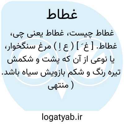 غطاط. [ غ َ ] ( ع اِ ) مرغ سنگخوار، یا نوعی از آن که پشت و شکمش تیره رنگ و شکم بازویش سیاه باشد. ( منتهی الارب ) ( آنندراج ). نوعی از سنگخوار. ( صراح ). قطا، و گفته اند نوعی از آن است که دارای پشت و شکم و بدن خاکستری رنگ است و اندرون بالهای آن سیاه و پاهای آن دراز و گردنش لطیف است. یکی آن غطاطة. ( از اقرب الموارد ). || سَحَر. غُطاط. رجوع به غُطاط شود.