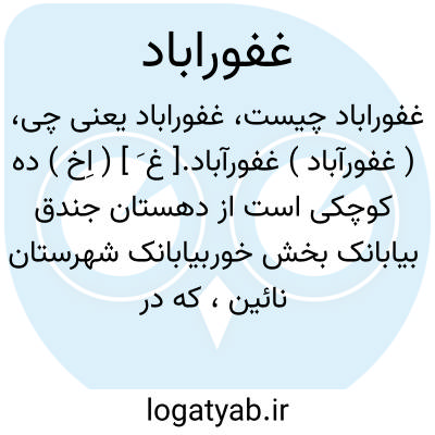 ( غفورآباد ) غفورآباد.[ غ َ ] ( اِخ ) ده کوچکی است از دهستان جندق بیابانک بخش خوربیابانک شهرستان نائین، که در 16هزارگزی باختر خور و 14هزارگزی راه چاه ملک به فرخی واقع است. در جلگه قرار دارد و گرمسیر است. سکنه آن 103تن شیعه فارسی زبانند. آب آن از قنات تأمین میشود. محصول آن غلات و خرماست و شغل اهالی زراعت، صنایع دستی، کرباس بافی و زغال سوزی است. ( فرهنگ جغرافیایی ایران ج 10 ).