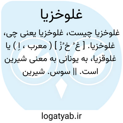 غلوخزیا. [ غ ُ خ ُزْ ] ( معرب، اِ ) یا غلوقزیا، به یونانی به معنی شیرین است. || سوس. شیرین بیان. غلوقیریزا. عودالسوس. رجوع به غلوقیریزا شود.
