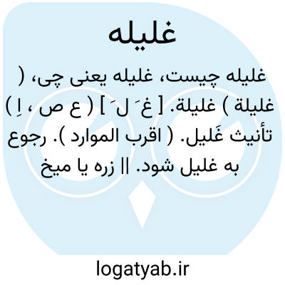 ( غلیلة ) غلیلة. [ غ َ ل َ ] ( ع ص، اِ ) تأنیث غَلیل. ( اقرب الموارد ). رجوع به غلیل شود. || زره یا میخ که حلقه های زره را فراگیرد. ( منتهی الارب ). واحدة الغلائل، و هی الدروع او مسامیرها لجامعة بین رؤوس الحلق. ( اقرب الموارد ). || بطینه که زیر زره پوشند. ج، غَلائِل. ( منتهی الارب ) ( آنندراج ). واحدة الغلائل، و هی بطائن تلبس تحت الدروع. ( از اقرب الموارد ).
