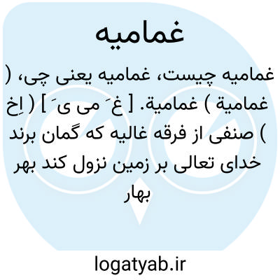 ( غمامیة ) غمامیة. [ غ َ می ی َ ] ( اِخ ) صنفی از فرقه غالیه که گمان برند خدای تعالی بر زمین نزول کند بهر بهار در ابری. ( مفاتیح العلوم ص 22 ). در خاندان نوبختی ( ص 260 ) آمده: غمامیة از غلاة که میگفتند خدا در هر بهاری بشکل ابر ( غمام ) بزمین فرودمی آید و دنیا را دور میزند و گویا این فرقه از فروع سبائیه بوده اند، چه ایشان علی بن ابیطالب را خدا و در ابر مقیم میدانستند، و میگفتند که رعد صورت و برق شلاق اوست، و هر وقت بیاد علی می افتادند بر ابر صلوات میفرستادند - انتهی.