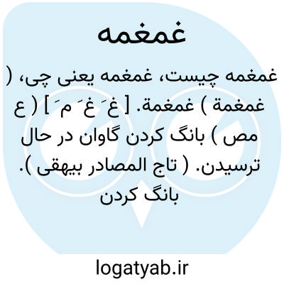 ( غمغمة ) غمغمة. [ غ َ غ َ م َ ] ( ع مص ) بانگ کردن گاوان در حال ترسیدن. ( تاج المصادر بیهقی ). بانگ کردن گاوان هنگام ترس. ( از اقرب الموارد ). || بانگ کردن مبارزان در جنگ. ( دهار ) ( تاج المصادر بیهقی ). بانگ کردن دلیران هنگام کارزار. ( از اقرب الموارد ). || زیرلبی حرف زدن. ( دزی ج 2 ص 228 ). || ( اِ ) بانگ گاوان وقت بیم. ( منتهی الارب ) ( آنندراج ) ( از اقرب الموارد ). بانگ. ج، غَماغِم. ( مهذب الاسماء ). || بانگ و خروش دلیران در کارزار. ( منتهی الارب ) ( آنندراج ) ( از اقرب الموارد ). || سخن ناپیدا. ( منتهی الارب ) ( آنندراج ). سخنی که آشکار و روشن نباشد. ( از اقرب الموارد ). و اما غمغمة قضاعة فصوت لایفهم بقطع حروفه. ( درة الغواص حریری ).