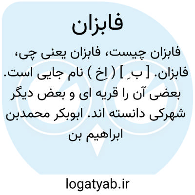 فابزان. [ ب ِ ] ( اِخ ) نام جایی است. بعضی آن را قریه ای و بعض دیگر شهرکی دانسته اند. ابوبکر محمدبن ابراهیم بن صالح عقیلی اصفهانی فابزانی به آنجا منسوب است. ( معجم البلدان ). ظاهراً بخاطر این انتساب آن را قریه ای از قرای اصفهان شمرده اند. و بهرحال امروز جایی به این اسم در حوالی اصفهان نیست.
