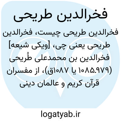 [ویکی شیعه] فخرالدین بن محمدعلی طُریحی (۹۷۹ـ۱۰۸۵ یا ۱۰۸۷ق)، از مفسران قرآن کریم و عالمان دینی امامیه در قرن یازدهم و مؤلف کتاب مجمع البحرین. او نخستین عالم شیعی است که در توضیح واژگان مشکل قرآن و حدیث، کتاب نوشت.