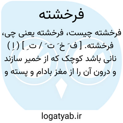 فرخشته. [ ف َ خ َ ت َ / ت ِ ] ( اِ ) نانی باشد کوچک که از خمیر سازند و درون آن را از مغز بادام و پسته و لوزینه های دیگر پر کنند و بر روی تابه پزند و شیره قند بر آن ریزند و بخورند و آن را به عربی قطائف خوانند. ( برهان ). به این معنی فرخشه صحیح است بدون تاء. ( از حاشیه برهان چ معین ). رجوع به فرخشه شود. || ( ص ) برزمین کشیده. ( برهان ). || کشته ای باشد که کسش نشناسد که کیست. ( حاشیه فرهنگ اسدی نخجوانی ). فرخسته:
