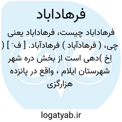 ( فرهادآباد ) فرهادآباد. [ ف َ ] ( اِخ )دهی است از بخش دره شهر شهرستان ایلام، واقع در پانزده هزارگزی باختر دره شهر و شش هزارگزی شمال راه مالرو ایلام. ناحیه ای است کوهستانی، گرمسیر و دارای 182 تن سکنه. از رودخانه سیکان مشروب میشود. محصولاتش غلات، لبنیات، برنج و حبوبات است. اهالی به کشاورزی و گله داری گذران میکنند. ( از فرهنگ جغرافیایی ایران ج 5 ).