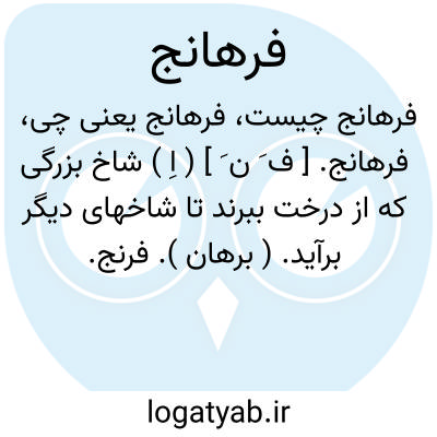 فرهانج. [ ف َ ن َ ] ( اِ ) شاخ بزرگی که از درخت ببرند تا شاخهای دیگر برآید. ( برهان ). فرنج. فرهنگ. فرهنج. ( حاشیه برهان چ معین ). || شاخ درختی را نیز گویند که پیوند کنند به درخت دیگر. ( برهان ). شاخ درخت انگوری که آن را در زمین کنند و از جای دیگر تتمه آن برآرند وآن را به عربی عکیس گویند. رجوع به فرهنج شود. || پیرامون دهان را نیز گویند از جانب بیرون. فرونجک. فرنج. رجوع به فرنج شود. || گرانی و سنگینی که در خواب بر مردم افتد و عربان کابوس گویند. ( برهان ). فرنجک. فدرنجک. درفنجک. برفنجک. فرونجک. ( حاشیه برهان چ معین ).