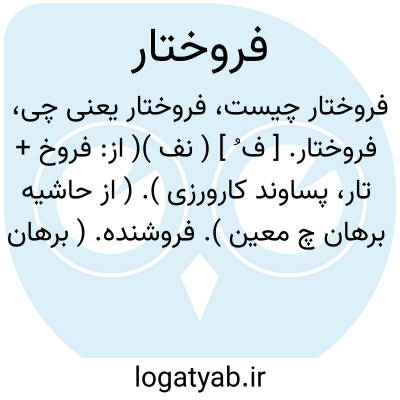 فروختار. [ ف ُ ] ( نف )( از: فروخ + تار، پساوند کارورزی ). ( از حاشیه برهان چ معین ). فروشنده. ( برهان ). رجوع به فرختار شود.