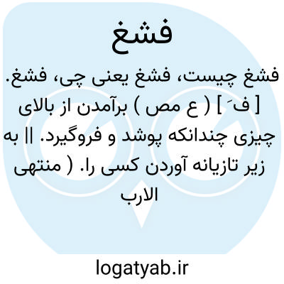فشغ. [ ف َ ] ( ع مص ) برآمدن از بالای چیزی چندانکه پوشد و فروگیرد. || به زیر تازیانه آوردن کسی را. ( منتهی الارب ) ( از اقرب الموارد ). به تازیانه زدن. ( تاج المصادر بیهقی ). || ( اِ ) چیزی که به مجاور خود پیچد بحدی که او را بپوشاند و فاشرا و امثال آن را از این جهت فشاغ نامند و فشغ از جنس فاشراست و نباتش شبیه عنب الثعلب است. ( تحفه حکیم مؤمن ). رجوع به فشاغ شود.