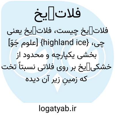 {highland ice} [علوم جَوّ] بخشی یکپارچه و محدود از خشکییخ بر روی فلاتی نسبتاً تخت که زمینِ زیر آن دیده می شود
