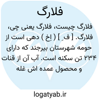 فلارگ. [ ف ِ ] ( اِخ ) دهی است از حومه شهرستان بیرجند که دارای 234 تن سکنه است. آب آن از قنات و محصول عمده اش غله و زعفران است. مزارع مهدی آباد، خونیک بالا و پائین و قاسم آباد جزو این ده است. ( از فرهنگ جغرافیایی ایران ج 9 ).