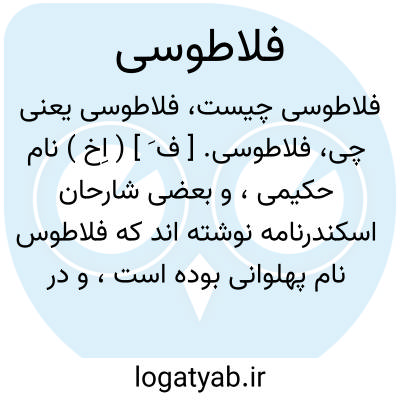 فلاطوسی. [ ف َ ] ( اِخ ) نام حکیمی، و بعضی شارحان اسکندرنامه نوشته اند که فلاطوس نام پهلوانی بوده است، و در کشف مسطور است که قومی است نهایت دلاور، و در فرهنگ آمده که فلاطوسی یک درم گویند. ( غیاث ). در اسکندرنامه نظامی بیتی است که معنی اخیر را میرساند: