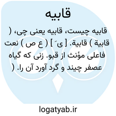 ( قابیة ) قابیة. [ ی َ ] ( ع ص ) نعت فاعلی مؤنث از قبو. زنی که گیاه عصفر چیند و گرد آورد آن را. ( منتهی الارب ). زنی که گیاه کافشه چیندو گرد آورد آنرا. ( آنندراج ). و رجوع به قابی شود.