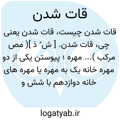 قات شدن. [ ش ُ دَ ]( مص مرکب )... مهره؛ پیوستن یکی از دو مهره خانه یک به مهره یا مهره های خانه دوازدهم با شش و بشی درنرد. متصل شدن مهره ببالاترین مهره ها در بازی نرد.