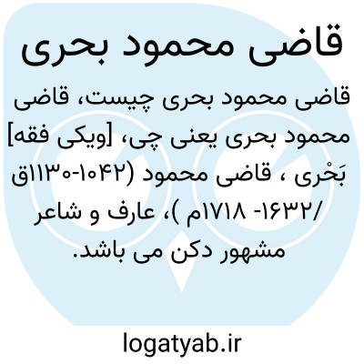 [ویکی فقه] بَحْری، قاضی محمود (۱۰۴۲-۱۱۳۰ق /۱۶۳۲- ۱۷۱۸م )، عارف و شاعر مشهور دکن می باشد.