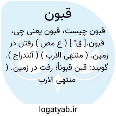 قبون.[ ق ُ ] ( ع مص ) رفتن در زمین. ( منتهی الارب ) ( آنندراج ). گویند: قبن قبوناً؛ رفت در زمین. ( منتهی الارب ).