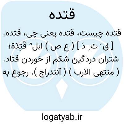 قتده. [ ق َ ت ِ دَ ] ( ع ص ) ابل ٌ قَتِدَة؛ شتران دردگین شکم از خوردن قتاد. ( منتهی الارب ) ( آنندراج ). رجوع به قتادی شود.
