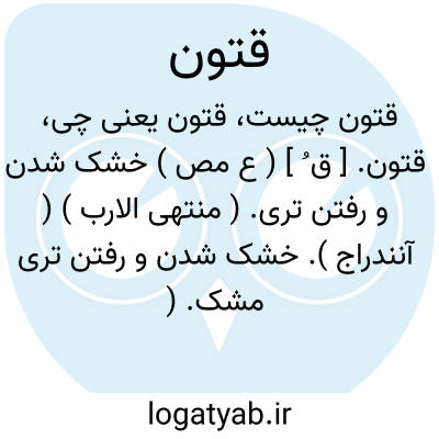 قتون. [ ق ُ ] ( ع مص ) خشک شدن و رفتن تری. ( منتهی الارب ) ( آنندراج ). خشک شدن و رفتن تری مشک. ( آنندراج ): قتن المسک قتونا؛ خشک شد و رفت تری آن. ( منتهی الارب ).