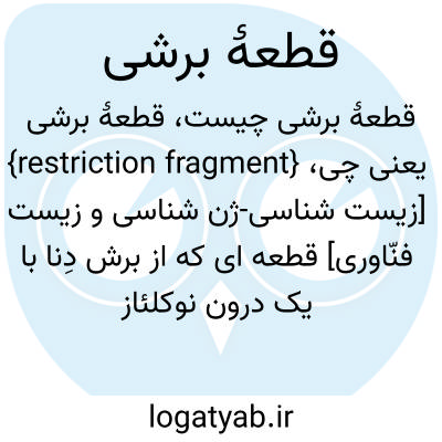 {restriction fragment} [زیست شناسی-ژن شناسی و زیست فنّاوری] قطعه ای که از برش دِنا با یک درون نوکلئاز ویژه بُر به دست می آید