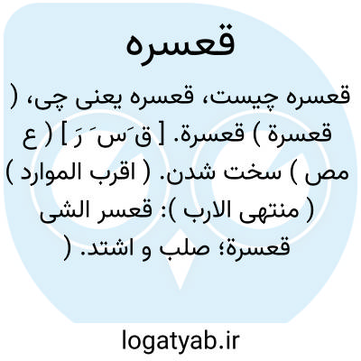 ( قعسرة ) قعسرة. [ ق َس َ رَ ] ( ع مص ) سخت شدن. ( اقرب الموارد ) ( منتهی الارب ): قعسر الشی قعسرة؛ صلب و اشتد. ( اقرب الموارد ). || توانا شدن. ( اقرب الموارد ) ( منتهی الارب ). || به سختی گرفتن: قعسره قعسرة؛ اخذه بشدة. ( اقرب الموارد ). || ( اِمص ) نیرومندی بر چیزی. || سختی و درشتی. ( منتهی الارب ).