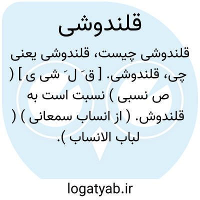 لغت نامه دهخدا قلندوشی. [ ق َ ل َ شی ی ] ( ص نسبی ) نسبت است به قلندوش. ( از انساب سمعانی ) ( لباب الانساب ). رجوع به قلندوش شود.