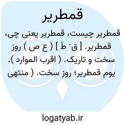 قمطریر. [ ق َ طَ ] ( ع ص ) روز سخت و تاریک. ( اقرب الموارد ). یوم قمطریر؛ روز سخت. ( منتهی الارب ):
