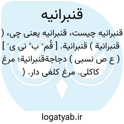 ( قنبرانیة ) قنبرانیة. [ قُم ْ ب ُ نی ی َ ] ( ع ص نسبی ) دجاجةقنبرانیة؛ مرغ کاکلی. مرغ کلغی دار. ( منتهی الارب ).