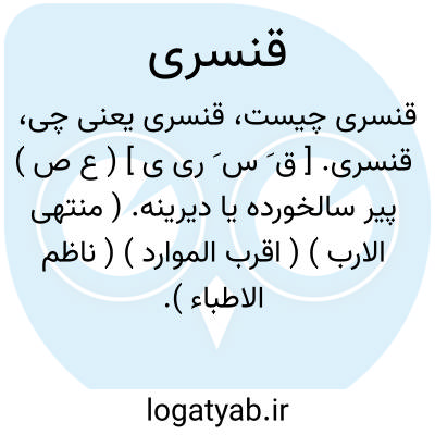 قنسری. [ ق َ س َ ری ی ] ( ع ص ) پیر سالخورده یا دیرینه. ( منتهی الارب ) ( اقرب الموارد ) ( ناظم الاطباء ). رجوع به قَنسَر و قِنَّسر شود.