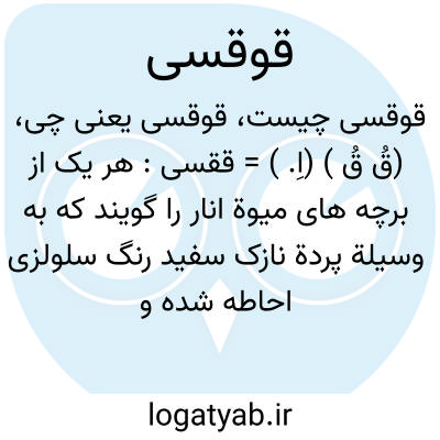 (قُ قُ ) (اِ. ) = ققسی: هر یک از برچه های میوة انار را گویند که به وسیلة پردة نازک سفید رنگ سلولزی احاطه شده و از برچة مجاور مجزا شده است و حاوی دانه های انار است، یک تکه انار پوست کنده.