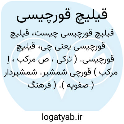 قیلیچ قورچیسی. ( ترکی، ص مرکب، اِ مرکب ) قورچی شمشیر. شمشیردار ( صفویه ). ( فرهنگ فارسی معین از سازمان صفویه ص 87 ). نام دسته ای از قورچیان حکومت صفویه. رجوع به قورچی و سازمان اداری حکومت صفویه ص 78 شود.