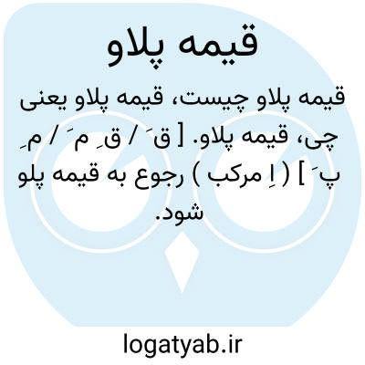 ( اسم ) نوعی پلو. طرز تهیه: گوشت را قیمه کرده بعد از سرخ شدن پیاز در روغن قیمه را می ریزند بحدی که پخته گردد و پس از پخته شدن که بروغن آمد آن را در لای پلو گذارند.
