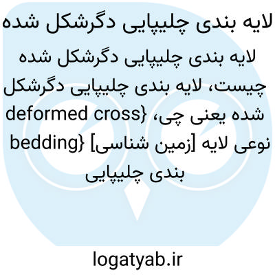 {deformed cross bedding} [زمین شناسی] نوعی لایه بندی چلیپایی که در آن پیش لایه ها پیش از ته نشینی لایۀ بالایی به سمت پایین دست جریان برگشته یا خمیده شده اند
