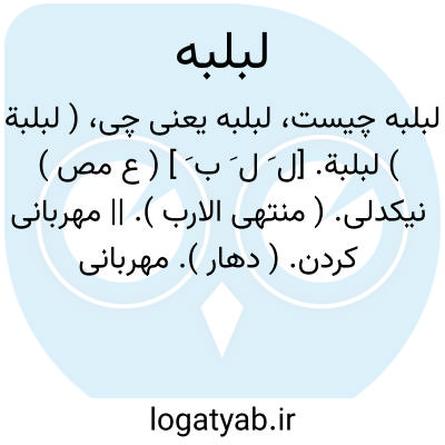 ( لبلبة ) لبلبة. [ل َ ل َ ب َ ] ( ع مص ) نیکدلی. ( منتهی الارب ). || مهربانی کردن. ( دهار ). مهربانی کردن بر فرزند. || مهربانی کردن و لیسیدن گوسپند بچه را پس از زاییدن. || پراکنده شدن. || بانگ کردن تکه وقت برجستن بر ماده. ( منتهی الارب ).